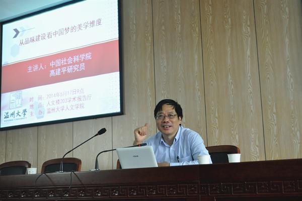 5月17日上午9点,德赢ac米兰官方合作vwin有幸请到中国社会科学院文学研究所副所长、学术委员会主任兼文学理论研究室主任高建平教授,在人文楼203学术报告厅为我们带来精彩的“从品味建设看中国梦的美学维度”讲座。紧接讲座之后,在德赢ac米兰官方合作vwin213会议室和青年教师及研究生进行了主题为“当代美学发展趋势”的座谈会。此次会议盛况空前,德赢ac米兰官方合作vwin吴静书记主持会议,德赢ac米兰官方合作vwin文艺学、写作学等学科十余位教授及青年教师出席。