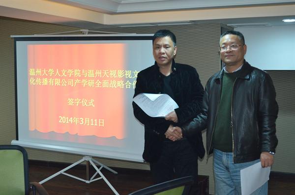 3月11日下午,德赢官网蔡贻象院长与温州天视传媒有限公司董事长黄勇共同签订了产学研全面战略合作协议书,标志着德赢ac米兰官方合作vwin在立足温州、服务地方方面又迈出了新的步伐。