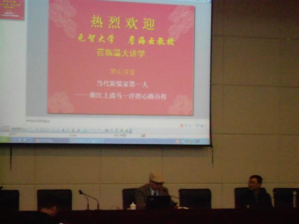 4月9日下午三点半,台湾元智大学中国语言研究所所长、应用中国语言文学系主任詹海云教授在我校育英图书馆学术报告厅开展了题为《当代新儒家第一人——浙江上虞马一浮的心路历程》的讲座。以德赢ac米兰官方合作vwin为主,来自各学院的多名研究生、本科生到场听讲,德赢ac米兰官方合作vwin王小盾教授等老师也认真听取了报告。詹海云教授对马一浮先生的生平经历、学术研究与学术贡献、道德风范、交际交往等方面做了全面而具体的介绍,条理清晰、重点突出,尤其对马一浮先生的成长历程关注较多。他指出,马一浮先生在中国现代思想文化史上拥有重要地位,是一位博古通今的经学家,也是学贯中西的现代儒家,又是正气凛然、人格高尚的知识分子。