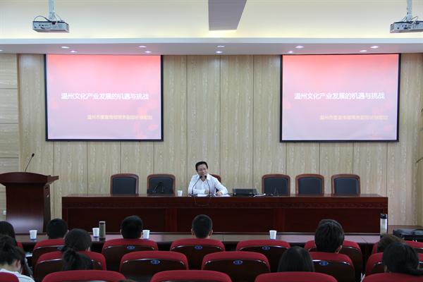 座谈会后,徐顺聪副部长还为德赢官网师生开设了题为“温州文化产业发展的机遇与挑战”专题讲座。院长蔡贻象教授以及广告学、中文专业的部分教师和本科生参加了此次讲座。