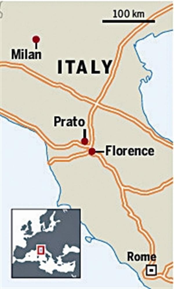 普拉托(Prato)省地处意大利中部偏西海岸,属于盛产葡萄酒的托斯卡纳大区。她南视首都罗马、北接工业重镇米兰、西通历史名城比萨、东南紧邻文艺复兴之都佛罗伦萨,处于意大利交通主枢纽位置。在历史上,普拉托曾是佛罗伦萨的卫星城,两地相距不到20公里,我们从佛罗伦萨机场打的到那里也不过41欧元。