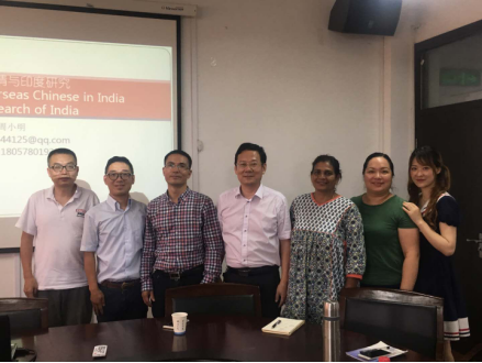6月27日下午13:30—15:00,周小明博士应邀在德赢ac米兰官方合作vwin外语楼212会议室顺利进行了“印度侨情与赴印学术研究”讲座。参加该次研讨会的有德赢官网毛继光副院长、Dhana、徐辉、夏诗荷、王素娟和周亚娟等老师,以及来自德赢官网英语专业研究生及其他相关专业的学生。
