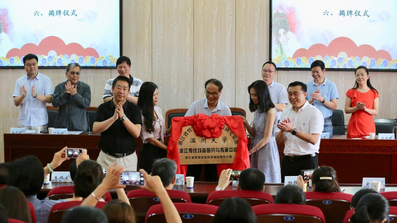 2018年6月28日上午,浙江传统戏曲研究与传承学术研讨会暨浙江省哲学社会科学重点研究基地“浙江传统戏曲研究与传承中心”揭牌仪式在德赢ac米兰官方合作vwin人文楼203学术报告厅隆重举行。莅临本次活动有来自全国各地的著名学者、省社科联科管处陈名义处长、温州市社科联潘忠强主席、温州市文广新局柳升高副局长和德赢ac米兰官方合作vwin副校长薛伟教授及部门、学院领导、师生120余人,揭牌仪式由德赢ac米兰官方合作vwin副院长郑春生教授主持。
