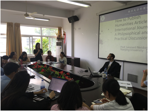 Neidorf教授2014年哈佛大学毕业,2016年来到中国工作,对国际学术体系有着非常独到的见解,在A&HCI期刊上发表20多篇文章,是目前以大陆高校名义在A&HCI期刊上发表文章比较多的学者之一。Neidorf教授从国际期刊的学术标准、论文的选题、写作的专业性和论证的说服力、理论和写作之间的关系、国内和国外学术评价机制差异等方面总结了他在国际期刊上发表论文的经验。Neidorf教授认为要在国际学术期刊上发表学术论文,需要具备运动员的专业精神,需要每天都去训练,需要对某个作家、作品、文类或是时期尽可能深入地理解。在交流环节,Neidorf教授还对中国学术如何走出去等一些议题发表了看法。