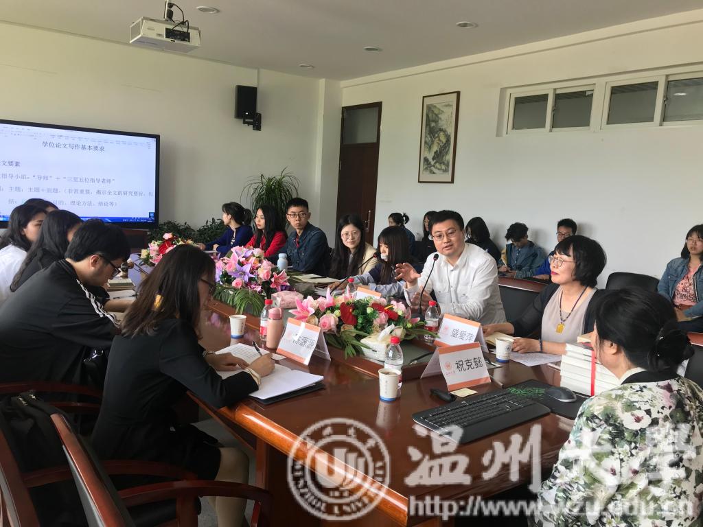 为扩展研究生学术视野,提高学术论文写作水平,2019年5月9日下午3时,德赢ac米兰官方合作vwin人文学术沙龙系列之“学术论文写作方法探索”主题讲座在人文楼213会议室顺利开展。此次沙龙特邀复旦大学祝克懿教授主讲,由德赢官网盛爱萍教授主持,孙良好院长出席,陈源源老师和李爱红老师也参加了此次讲座。现场学术氛围浓厚,师生们认真聆听,深刻讨论。