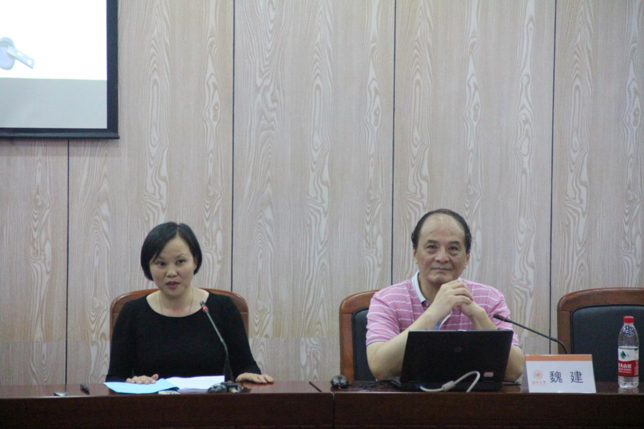 活动开始,孙良好教授对魏建教授进行了介绍并对其文学成就表示了敬仰。简单开场后,魏建教授从何言“百年”、“祭”入题开始了文学讲座,他从“北伐开始的政治郭沫若”、“30年代的学术郭沫若”、“新时期以来郭沫若的两极评价”等多个方面概述郭沫若的一生沉浮,在讲解中我们知晓了偏见比无知离真理更远,魏建教授从《新青年》杂志的主导、胡适陈独秀的功绩、“民主”与“科学”的引领、新旧思潮的激战向我们述说五四传说与事实反差下的郭沫若,肯定郭沫若对文学革命的贡献,认为在“文学革命”的自觉倡导方面,郭沫若一派有可能落后于留美胡适派和留日《新青年》派,但在文学革命的理念上,在新文学诗学的建构上,在新诗创作的质量上,郭沫若明显高于胡适等早期白话诗人。此外魏建教授还补充了郭沫若新诗的贡献。魏建教授激情洋溢、诙谐幽默的讲述吸引了全场师生的注意力。随后在场同学积极发言,魏建教授对同学们提出的疑问给予一一解答,讲座在精彩的交流互动中圆满结束,最后孙教授对此次讲座进行概括并邀请彭小燕老师上台做总结发言。