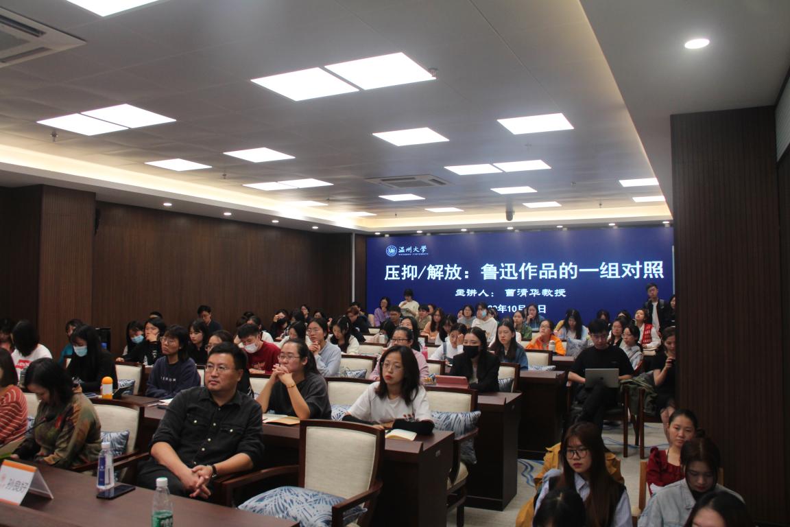 曹清华教授以其独特的眼光、精湛的文本细读技巧,并结合他丰富渊博的知识对鲁迅作品重新进行发掘,将鲁迅作品中丰富的情感思想内蕴揭示出来,带给大家对于鲁迅研究的崭新的思考。讲座在其乐融融的氛围中完满结束。