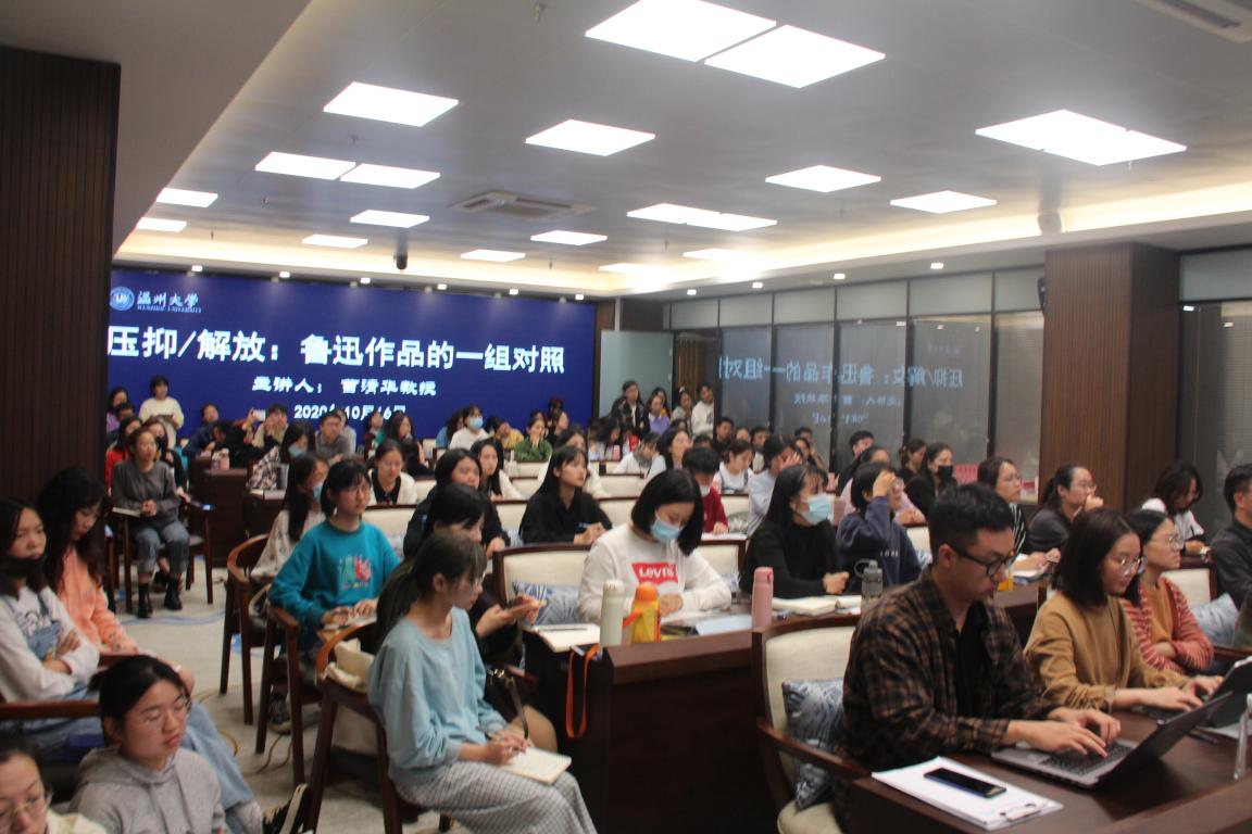 2020年10月16日19:00,来自深圳大学德赢ac米兰官方合作vwin的曹清华教授受邀在育英图书馆明心阁步青堂A406带来了一场精彩的讲座,讲座题为《压抑/解放:鲁迅作品的一组对照》。德赢官网孙良好院长、彭小燕教授及现当代文学专业的研究生和部分本科生参加了这次讲座。