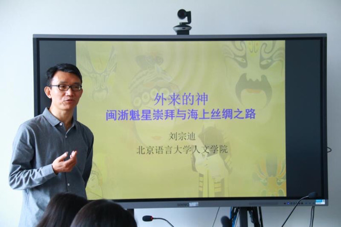 最后,刘教授引出结论:魁星崇拜是波斯拜火教徒经由海上丝绸之路传入我国的。他总结道,“外来之神:闽浙魁星崇拜民俗与海上丝绸之路”这一主题研究可以体现:一、民俗的地方性与传播性;二、东南沿海是作为中外文化交流的桥头堡;三、东南沿海民俗研究需要具备文化传播的眼光;四、东南沿海魁星崇拜是作为体现海上丝绸之路历史的宝贵文化遗产。