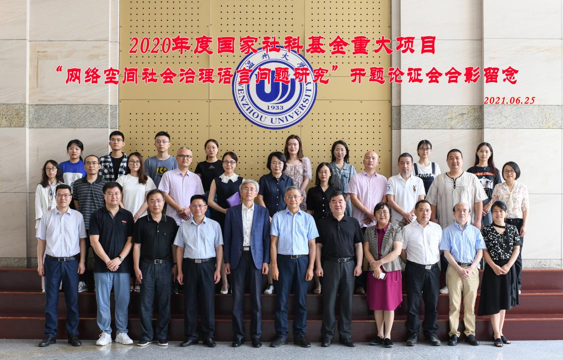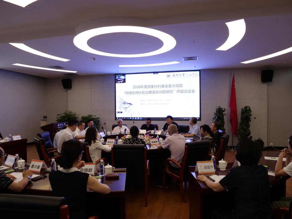 6月25日上午,国家社会科学基金重大项目“网络空间社会治理语言问题研究”开题论证会在我校举行。浙江省社科联党组成员、副主席陈先春和德赢ac米兰官方合作vwin副校长徐和昆出席会议并致辞。清华大学人文讲席教授、出土文献研究与保护中心主任黄德宽教授,北京语言大学高精尖语言研究中心首席专家、中国辞书学会会长李宇明教授,湖南师范大学党委委员,副校长、国家“万人计划”哲学社会科学领军人才唐贤清教授,上海师范大学党委常委、上海市领军人才陈昌来教授,教育部“长江学者”特聘教授、江苏师范大学语言科学与艺术学院院长杨亦鸣教授,国家语委科研基地中国语情与社会发展研究中心主任、武汉大学赵世举教授,浙江科技学院副校长万健教授,各子课题负责人及部分课题组成员,学校相关职能部门负责人等出席会议。