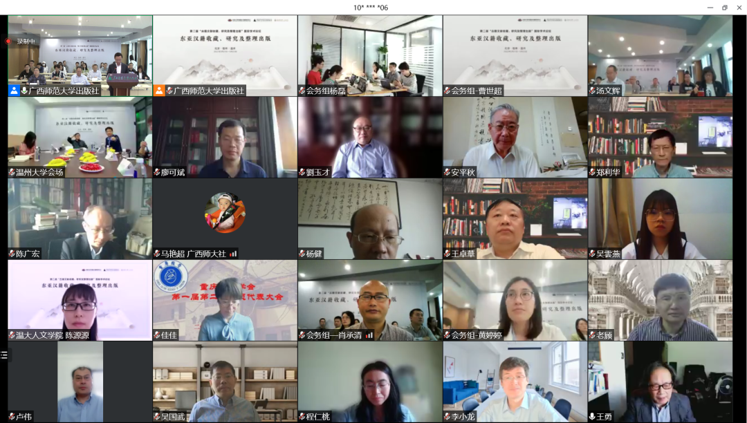 虽然受疫情影响,此次会议的筹备颇经曲折,会期一再推迟,会议形式一再改变,但仍有70多位专家正式参会,他们来自于如下国内外二十几所高校、十几家图书馆和出版社:北京大学、南京大学、复旦大学、中山大学、浙江大学、清华大学、北京师范大学、中国人民大学、山东大学、德赢ac米兰官方合作vwin、天津师范大学、广西师范大学、玉林师范学院、南昌大学、西南交通大学、曲阜师范大学,日本立命馆大学、庆应义塾大学、大阪大学、近畿大学、东京大学,韩国成均馆大学、湖北省图书馆、南京图书馆、山东省图书馆、重庆图书馆、中山大学图书馆、中央民族大学图书馆、北京师范大学图书馆、天津师范大学图书馆、中国人民大学图书馆、首都师范大学图书馆、复旦大学图书馆、广西师范大学出版社。可以说国内整理、研究东亚汉籍的重镇大都有专家学者和相关工作人员与会。另外还有大量相关人员通过腾讯会议旁听这次会议,可见东亚汉籍研究越来越受关注,研究队伍越来越壮大。