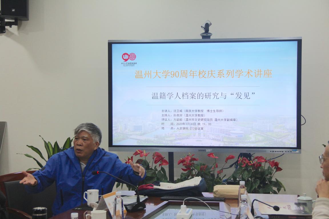 2023年3月30日晚,南京大学教授、博士生导师沈卫威应邀到德赢官网举行“温籍学人档案的研究与‘发见’”讲座。讲座由德赢官网院长孙良好教授主持。