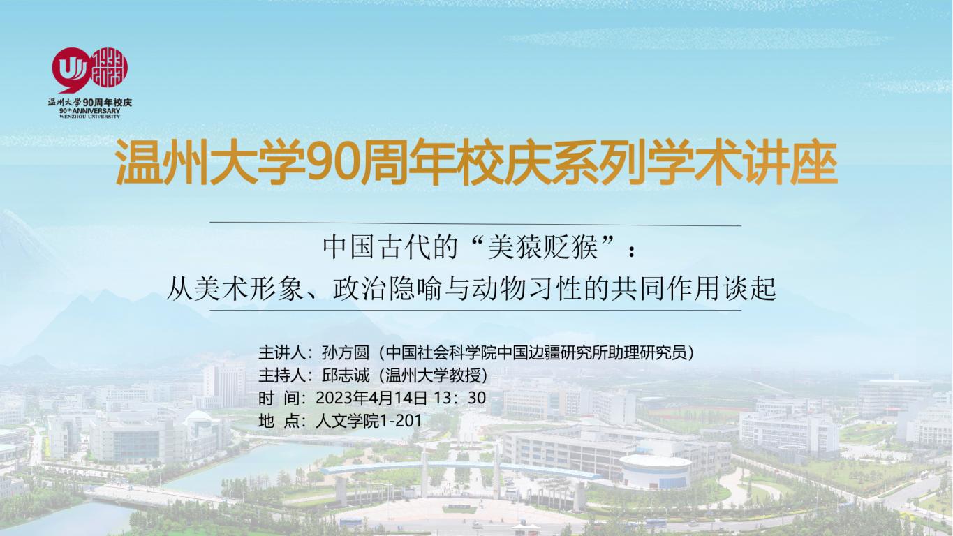 2023年4月14日下午,中国社会科学院中国边疆研究所助理研究员孙方圆老师应邀为我校学子带来了一场题为《中国古代的“美猿贬猴”:从美术形象、政治隐喻与动物习性的共同作用谈起》的学术讲座。本次讲座由我校邱志诚教授主持,王长命副教授及相关专业本科生、研究生60余人参加了讲座。