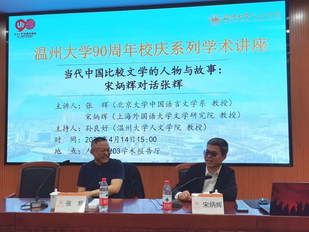 2023年4月14日下午,北京大学中国语言文学系张辉教授、上海外国语大学文学研究院宋炳辉教授应邀参加我校90周年校庆系列学术讲座“当代中国比较文学的人物与故事——宋炳辉对话张辉”。讲座由德赢官网院长孙良好教授主持。