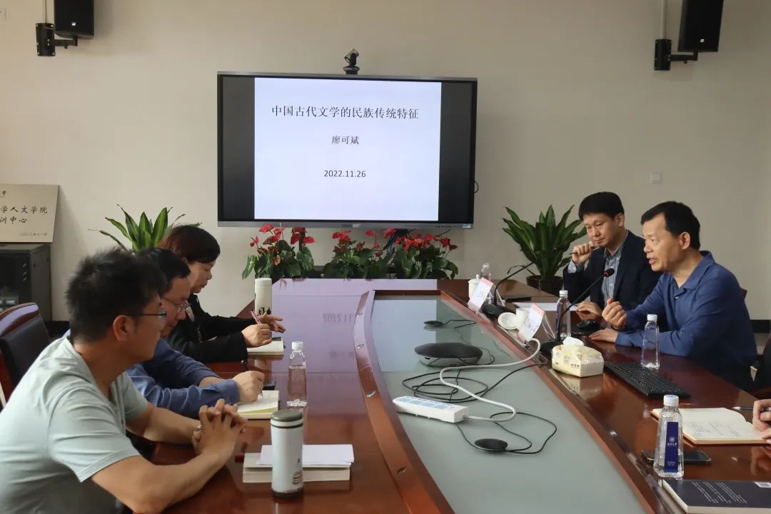 2023年4月21日上午,北京大学中文系教授、长江学者特聘教授、北京大学中国古文献研究中心主任廖可斌教授应邀在德赢官网213学术交流中心作了题为“中国古代文学的民族特征与研究方法”的学术讲座。讲座由德赢官网侯荣川教授主持,孙良好院长、罗筱玉教授、杨万里教授等参与。