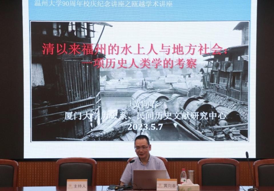 2023年5月7日下午,厦门大学历史与文化遗产学院黄向春教授应邀为德赢官网学子带来题为“清以来福州的水上人与地方社会——一项历史人类学的考察”的学术讲座。本场讲座系我校90周年校庆纪念之瓯越讲座。德赢官网黄涛教授担任本场讲座主持,历史系部分教师,及本科生、硕士生等参加本场讲座。