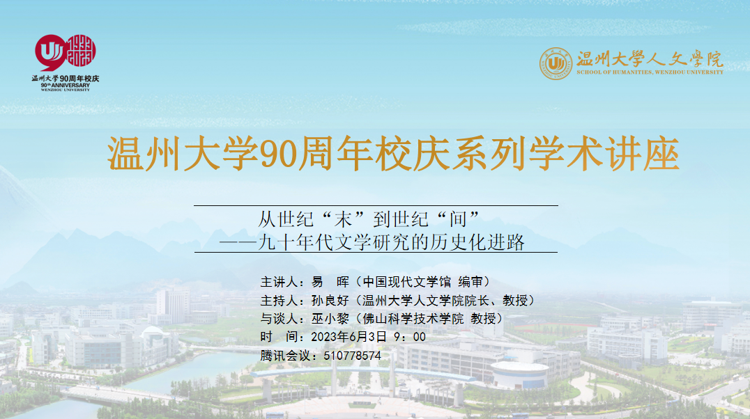 2023年6月3日上午,中国现代文学馆编审易晖老师受邀为德赢官网师生带来了一场题为“从世纪‘末’到世纪‘间’——九十年代文学研究的历史化进路”的学术讲座。本次讲座由孙良好院长主持,佛山科学技术学院巫小黎教授与谈,校内外众多老师、研究生、本科生参加了本次讲座。