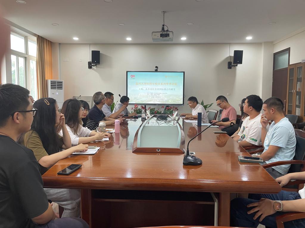 2023年6月20日下午,德赢ac米兰官方合作vwin90周年校庆系列学术讲座在德赢官网213学术交流中心顺利举行。本次讲座由华东师范大学历史系教授阮清华主讲,题为“上海:从东南壮县到国际都会的蝶变”,德赢ac米兰官方合作vwin副院长郑春生教授担任本次讲座主持。陈勇、刘建国、尤育号、唐运冠、刘莉、陈鸿超、王鹏等老师与到场师生一同聆听讲座。