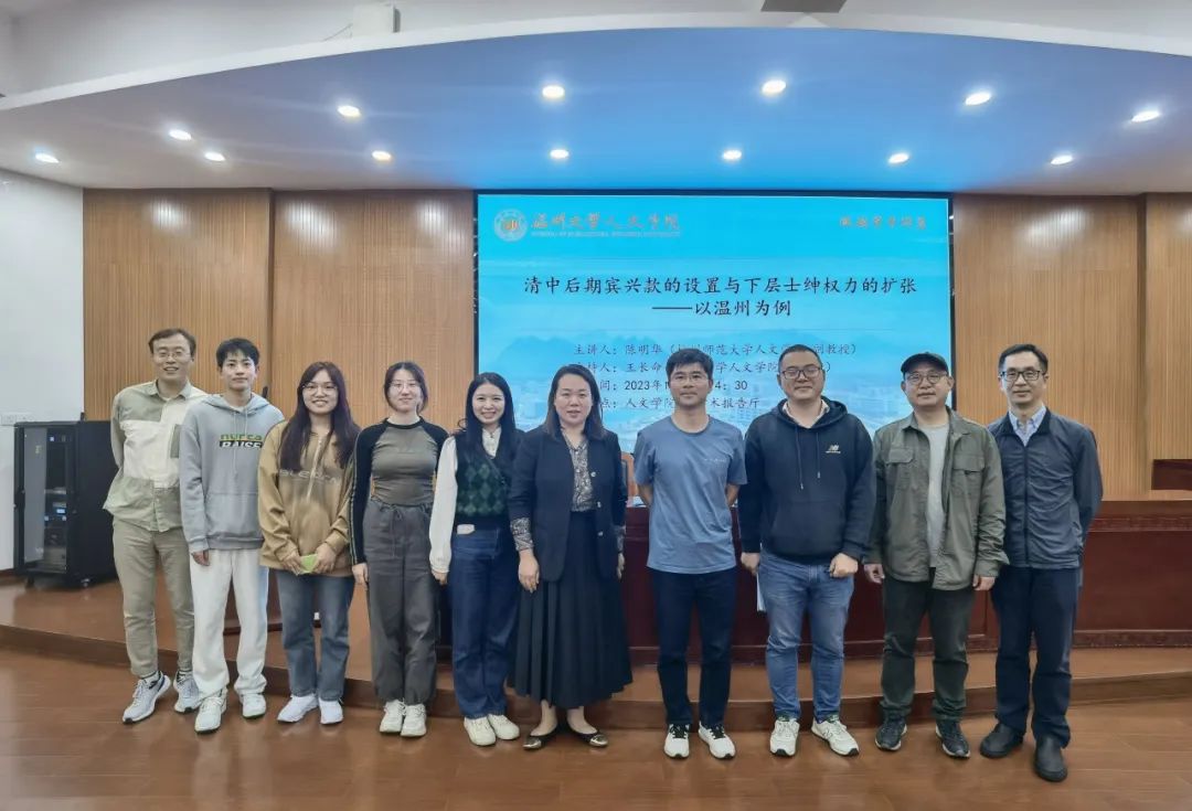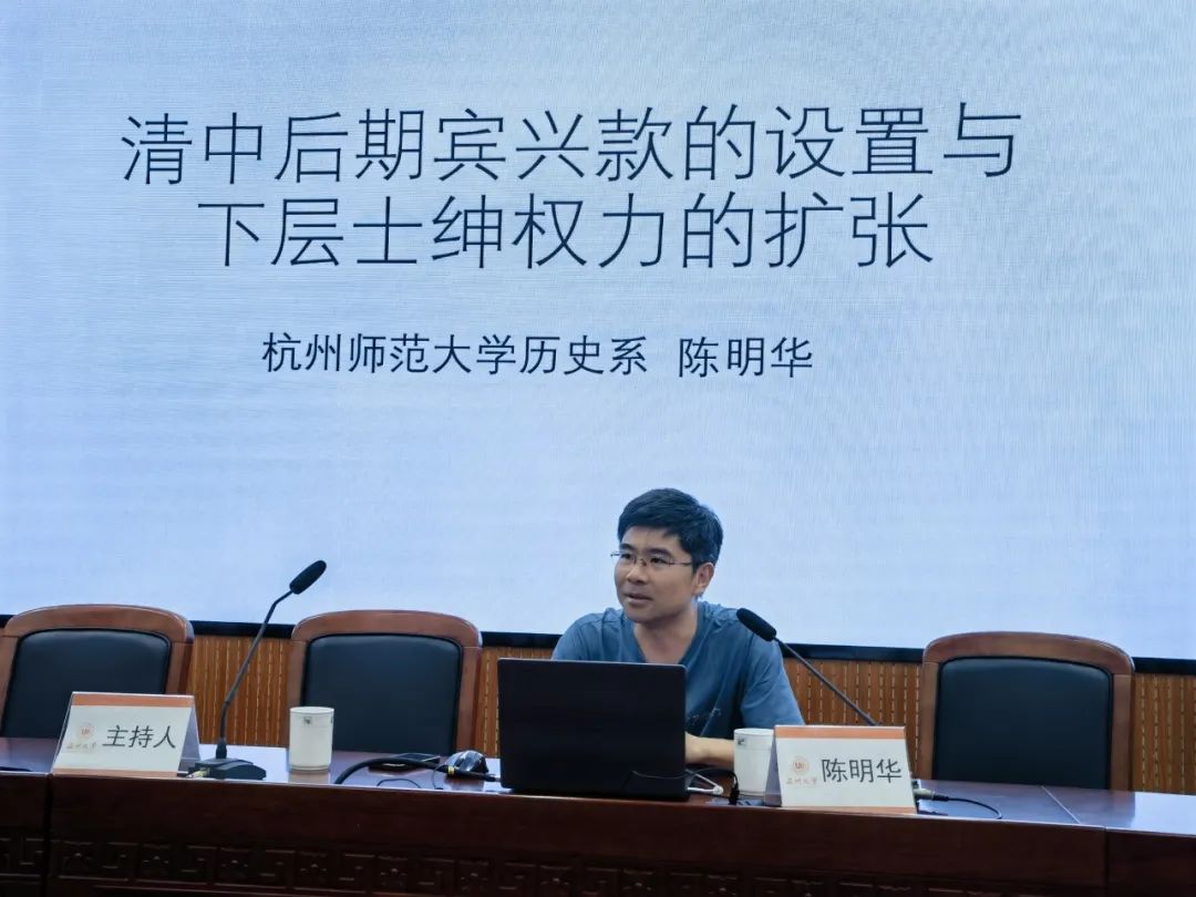 2023年11月8日下午,杭州师范大学德赢ac米兰官方合作vwin历史系陈明华副教授应邀来德赢官网,给德赢官网师生作了一场题为“清中后期宾兴款的设置和下层士绅权力的扩张——以温州为例”的精彩学术讲座。本次讲座由历史系王长命副教授主持。