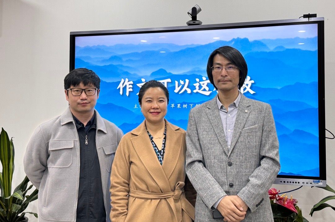 最后,伍老师还耐心地与中文师范、创意中文等专业的同学们做了互动性的对话、交流,对于同学们提出的问题给出了充分清晰的解答。活动结束后三位老师进行了合影留念。李广旭博士与伍苹老师表示期待后续的交流和合作,以期在创意写作教育教学方面有更深入的探讨。