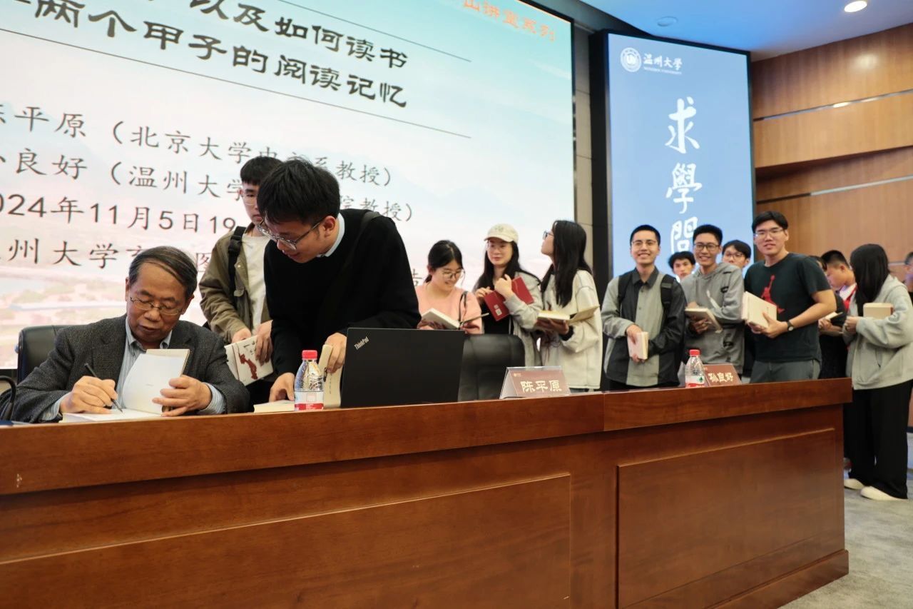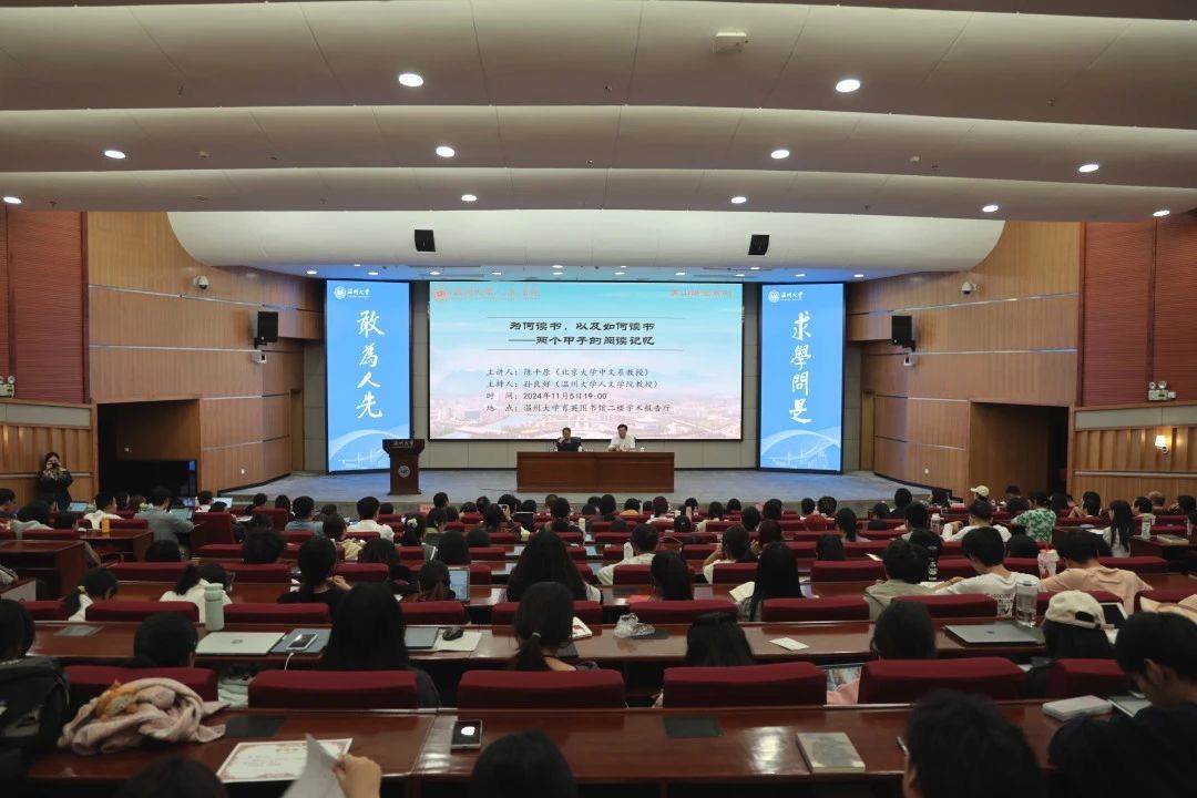 2024年11月5日晚,哲学社会科学一级教授、北京大学现代中国人文研究所所长、中央文史研究馆馆员陈平原教授做客我校罗山讲堂,以“为何读书,以及如何读书——两个甲子的阅读记忆”为题讲演,德赢官网院长、图书馆馆长孙良好教授主持,来自校内外的200余人参与听讲。
