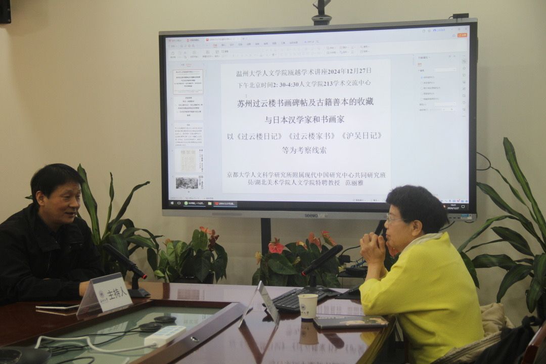 2024年12月27日下午,京都大学人文科学研究所附属现代中国研究中心共同研究班员范丽雅教授应邀在德赢官网213学术交流中心作了题为《苏州过云楼书画碑帖及善本古籍的收藏与日本汉学家和书画家》的学术讲座。本次讲座由我校古籍整理研究所所长侯荣川教授主持,30余师生积极到场参加。