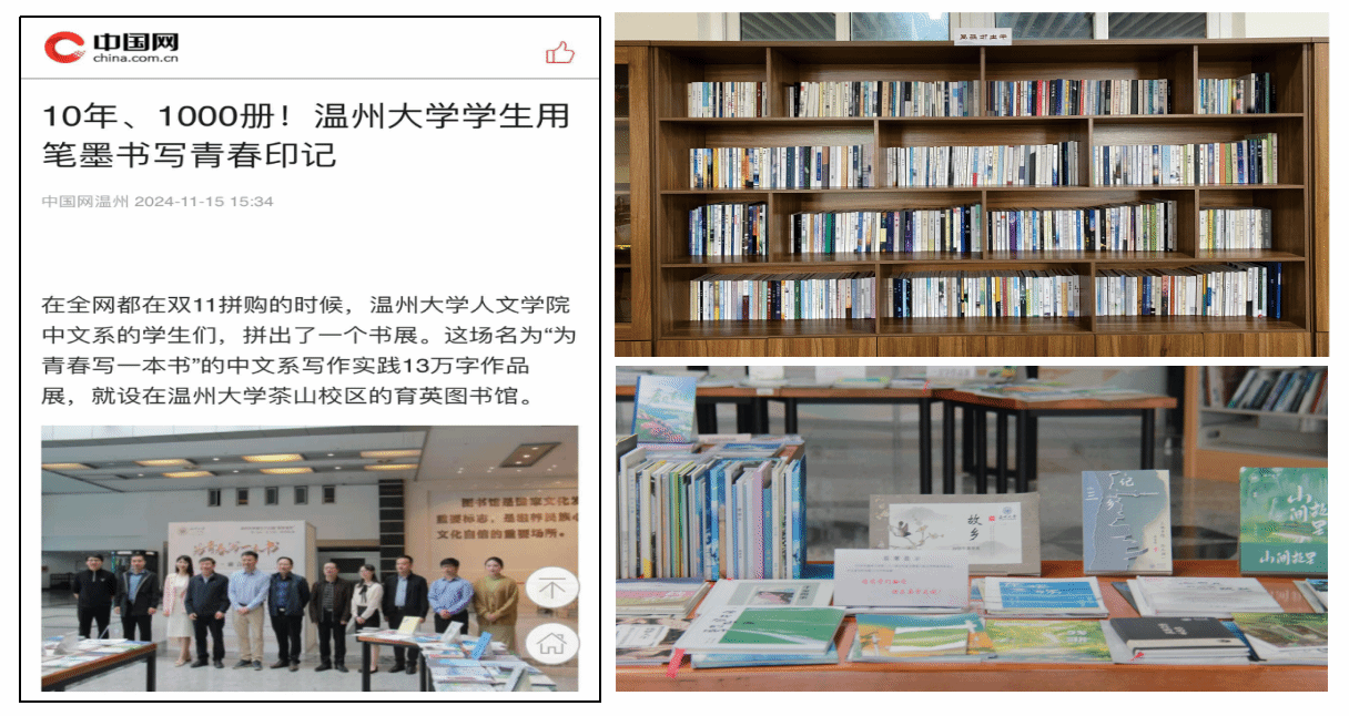 自2015年起,每位学生完成一部13万字作品集,成为学生具备写作能力的最直接证明。指导学生项目《海瓯翼行——成功“讲好中国故事”,海外传播第一民聚力》获“互联网+”大赛金奖,指导学生在《诗刊》《青春》《延河》《文学港》《香港文学》《中国校园文学》等文学名刊发表作品数十篇,指导的《“沉浸式文旅”玩转南戏》等数十篇学生作品在学习强国、中国教育电视台等媒体发表。组织学生参加“推普助力乡村振兴”实践活动获教育部和团中央联合表彰。部分毕业生成为创意写作优秀人才,如考取创意写作方向研究生,入选浙江省作协“新荷计划”人才库等。毕业生具备多元化的就业方向,主要集中于文化创意产业、政府公务员和企事业单位文职岗位。