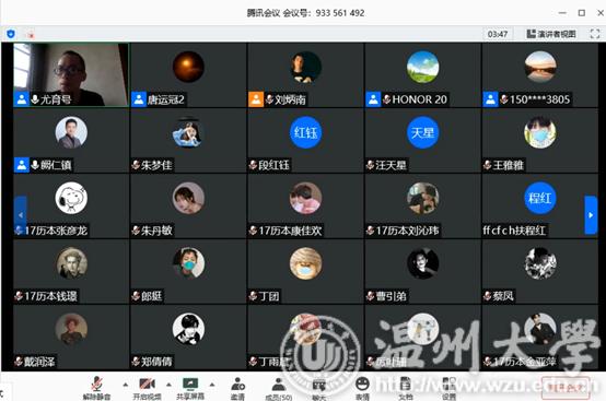 为顺利开展历史系2017级本科生实习工作,同时配合学校防疫工作安排,5月11日上午9:00,德赢官网17历本班利用腾讯会议平台在线召开教育实习启动大会。学院副院长郑春生老师、历史系主任尤育号老师、历史系副主任陈勇老师、实习项目负责人阙仁镇老师、17历史(师范)班班主任唐运冠老师、带队教师张洁老师以及2017级历史系全体同学出席会议。