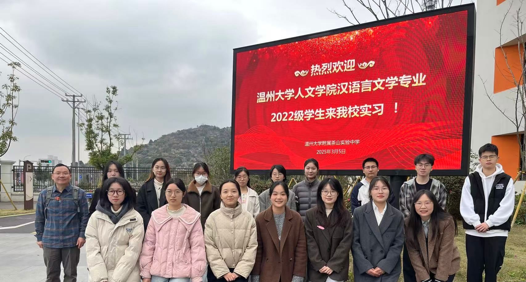 2025年3月5日,德赢ac米兰官方合作vwin汉语言文学(师范)专业15位实习生,由德赢ac米兰官方合作vwin教学副院长陈鸿超老师、指导教师周小兵老师、苏碧铨老师带队,与德赢ac米兰官方合作vwin附属茶山实验中学季焕忠校长、项东福主任、张南主任、八年级语文学科指导老师和班主任指导老师,共同出席在德赢ac米兰官方合作vwin附属茶山实验中学一楼合班教室举行的见面会。本次见面会为踏上实习征程的学子们搭建了沟通的桥梁,有力地促进了校方与实习生之间的交流与合作。