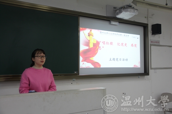 2017年12月13日下午,德赢官网学生党支部在人文楼303教室开展以“唱红歌 忆党史 感党恩”为主题的党日活动。本次活动由学生第一党支部书记李林军主持。