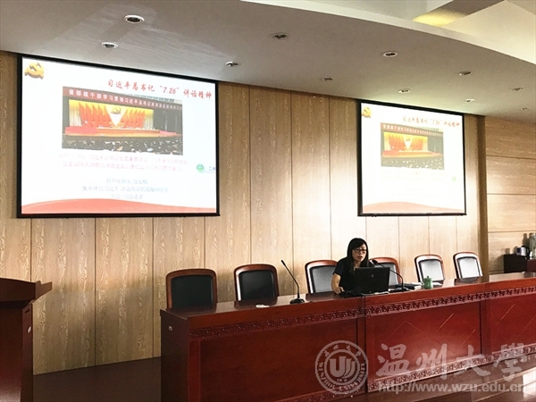 9月20日下午,德赢官网召开政治理论学习会,学习传达习近平总书记7月26日在省部级主要领导干部专题研讨班上重要讲话精神。党总支书记吴静作专题辅导报告,70余位教职员工参加学习。