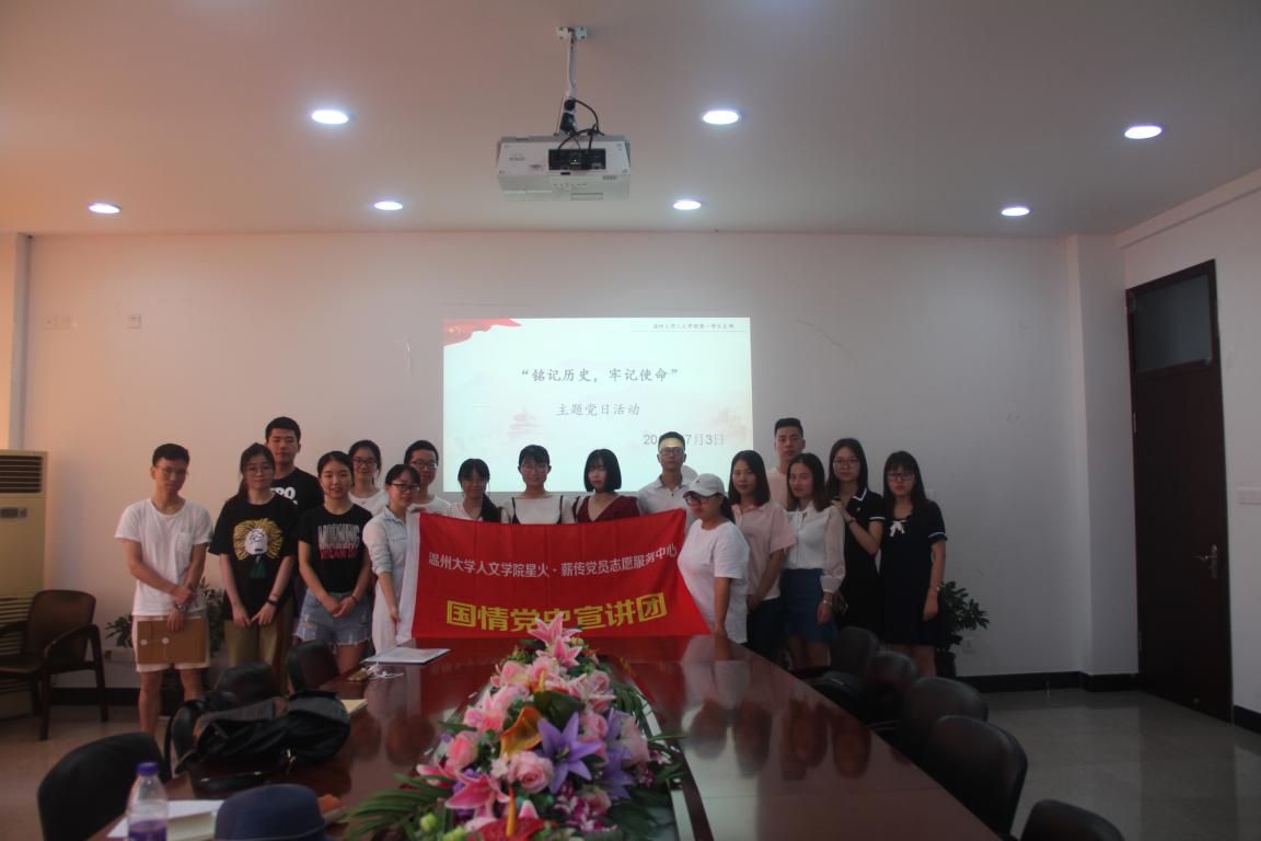 7月3日上午10点,德赢官网学生第一党支部携手国情党史宣讲团于人文楼213会议室开展“铭记历史,牢记使命”主题党日活动,庆祝中国共产党成立97周年。本次活动由学生第一党支部书记李林军主持,国情党史宣讲团负责人赵飞跃同志宣讲,支部全体成员参与。