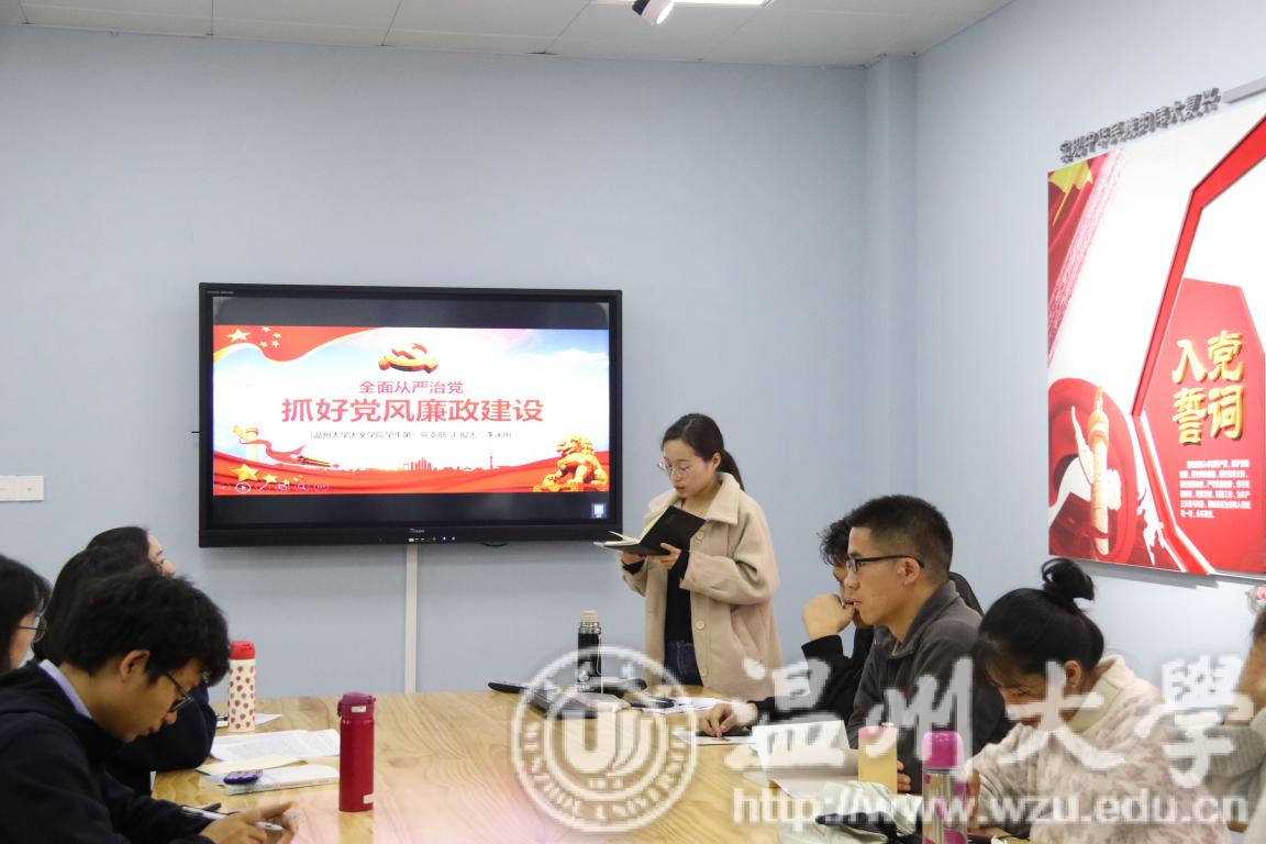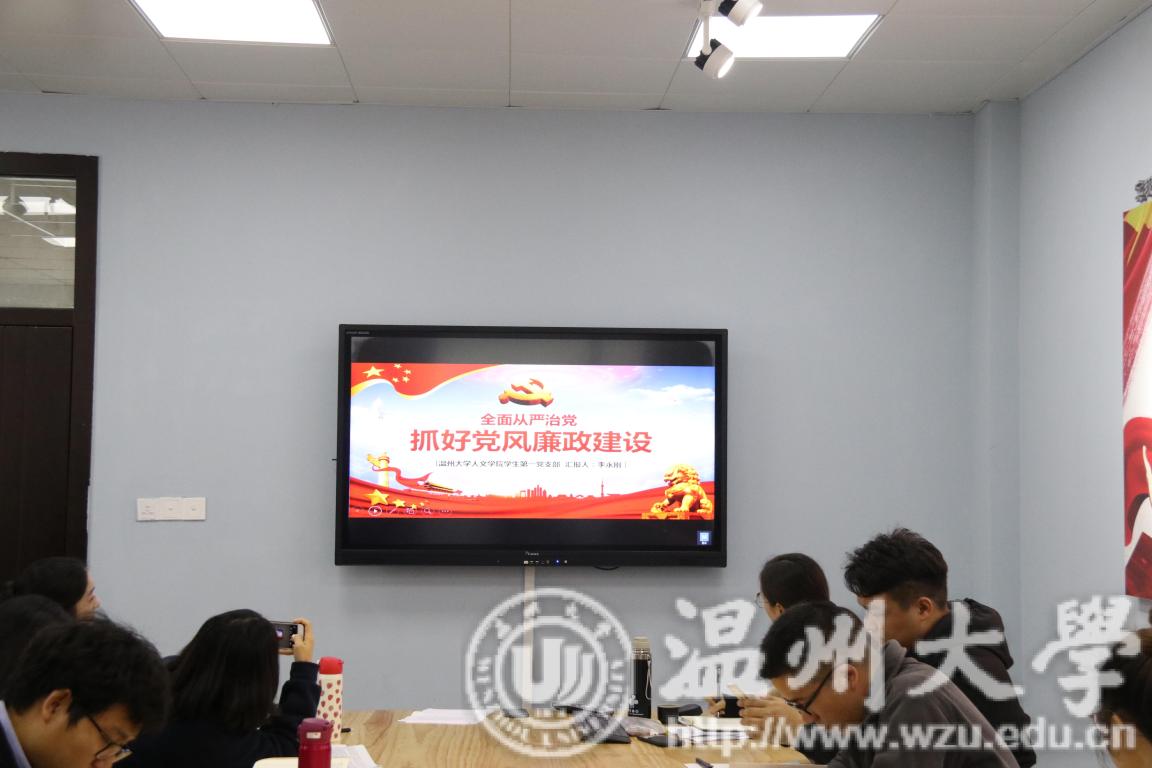 2018年12月23日下午3点半,德赢官网学生第一党支部和第二党支部携手“星火·薪传”党员志愿服务中心之国情党史宣讲团,于北校区外语楼221党员之家会议室举办了“全面从严治党,抓好党风廉政建设”主题党日活动。活动由德赢官网学生第二党支部书记陈赛君主持,学生第一党支部部分党员、第二党支部全体党员和国情党史宣讲团成员参加了本次活动。