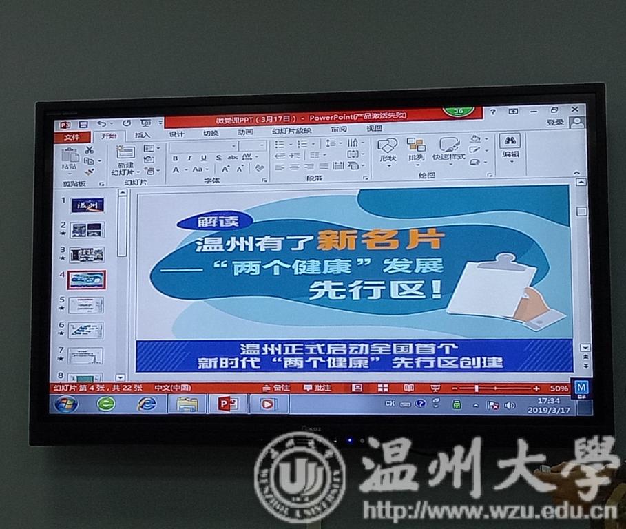 2019年3月17日晚,德赢官网学生第一党支部于党员之家开展了“温州有了新名片,‘两个健康’发展先行区”微党课。本次学习由支部书记李林军主讲。