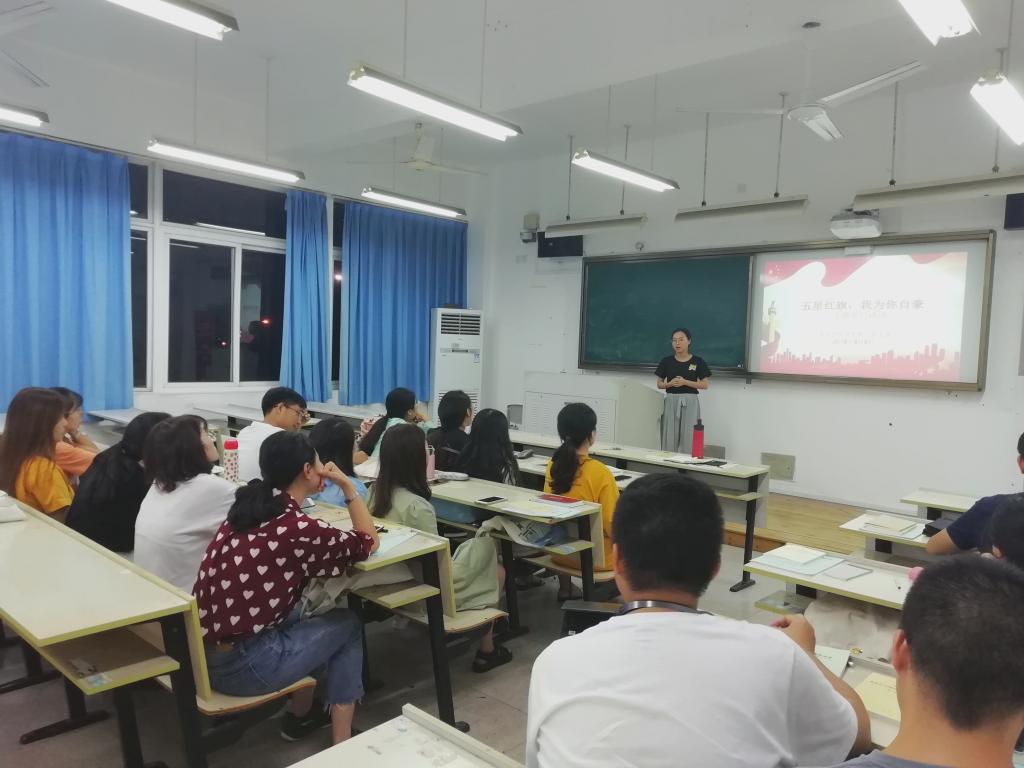 “五星红旗,我为你自豪”,这是学生第二党支部召开的党日活动主题。全体党员使用UMU平台共同观看央视2019年《开学第一课》视频,畅谈心得。许鲁霞同志说:“五星红旗背后,是中国精神,是几代人不懈奋斗的结果。今天我们这代人接过五星红旗,不仅仅是沉甸甸的分量,更应该用自己的实际行动去践行中国精神。”谢静漪同志认为:“五星红旗是每个中国人的初心与骄傲,我们应该满腔热忱地热爱国旗、尊重国旗,让它飘扬在每个人的心底。”