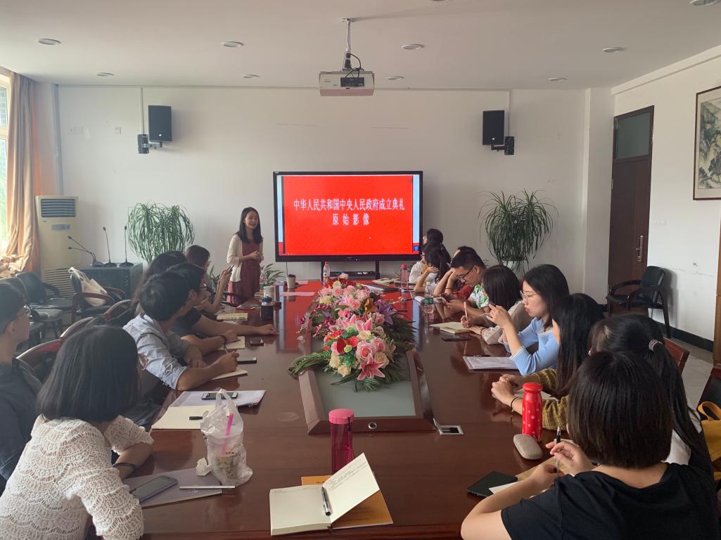 学生第三党支部开展了“重温开国大典,共迎祖国华诞”主题党日活动。全体同志观看彩色版开国大典视频并逐一发表了自己的感想。