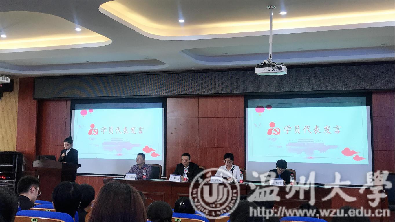 2019年11月6日下午,中共德赢ac米兰官方合作vwin委员会党校分党校(联合)2019年第2期发展对象培训班于北校3号楼203学术报告厅正式开班。出席开班典礼的领导有:法学院党委书记林钦、商学院党委书记郑彩莲、音乐学院党委书记朱启鑫和国际教育学院党委书记林爱菊。典礼分为四个部分:奏唱国歌、商学院党委书记郑彩莲老师致辞、宣读《学员守则》、学员代表发言。