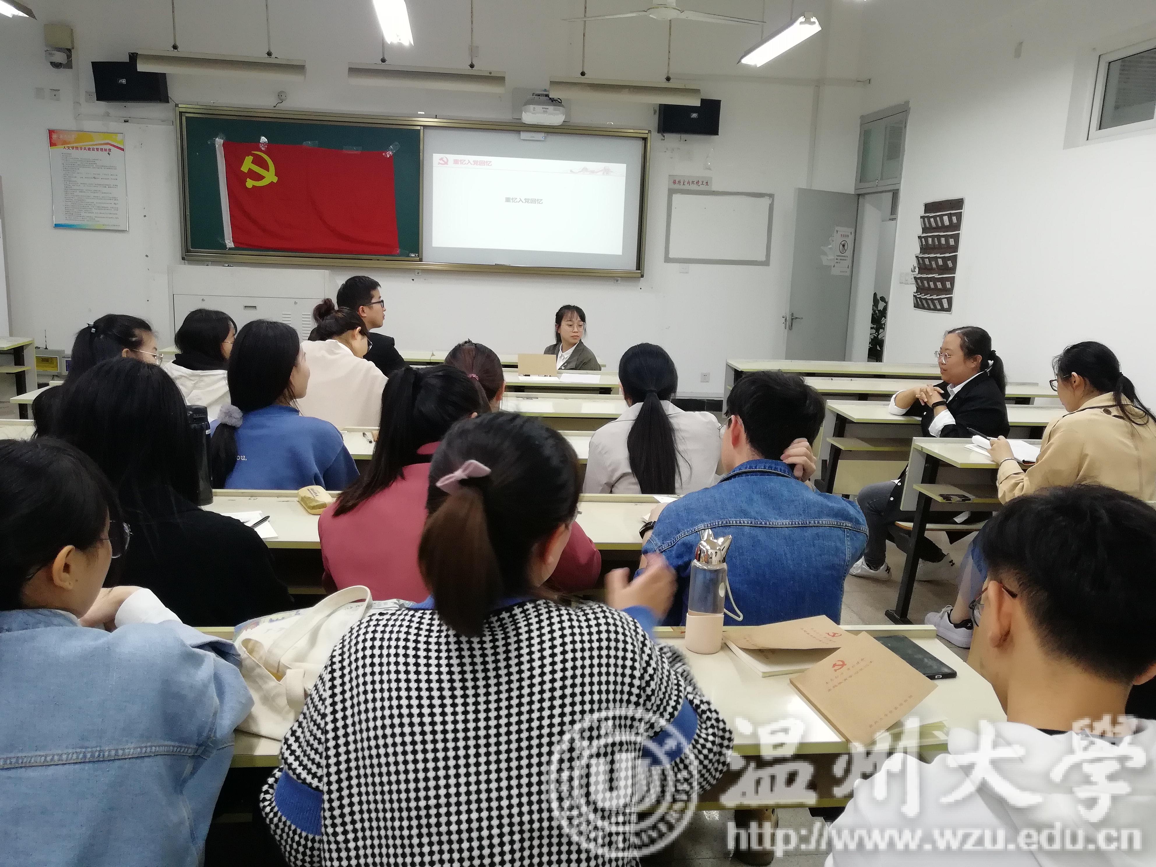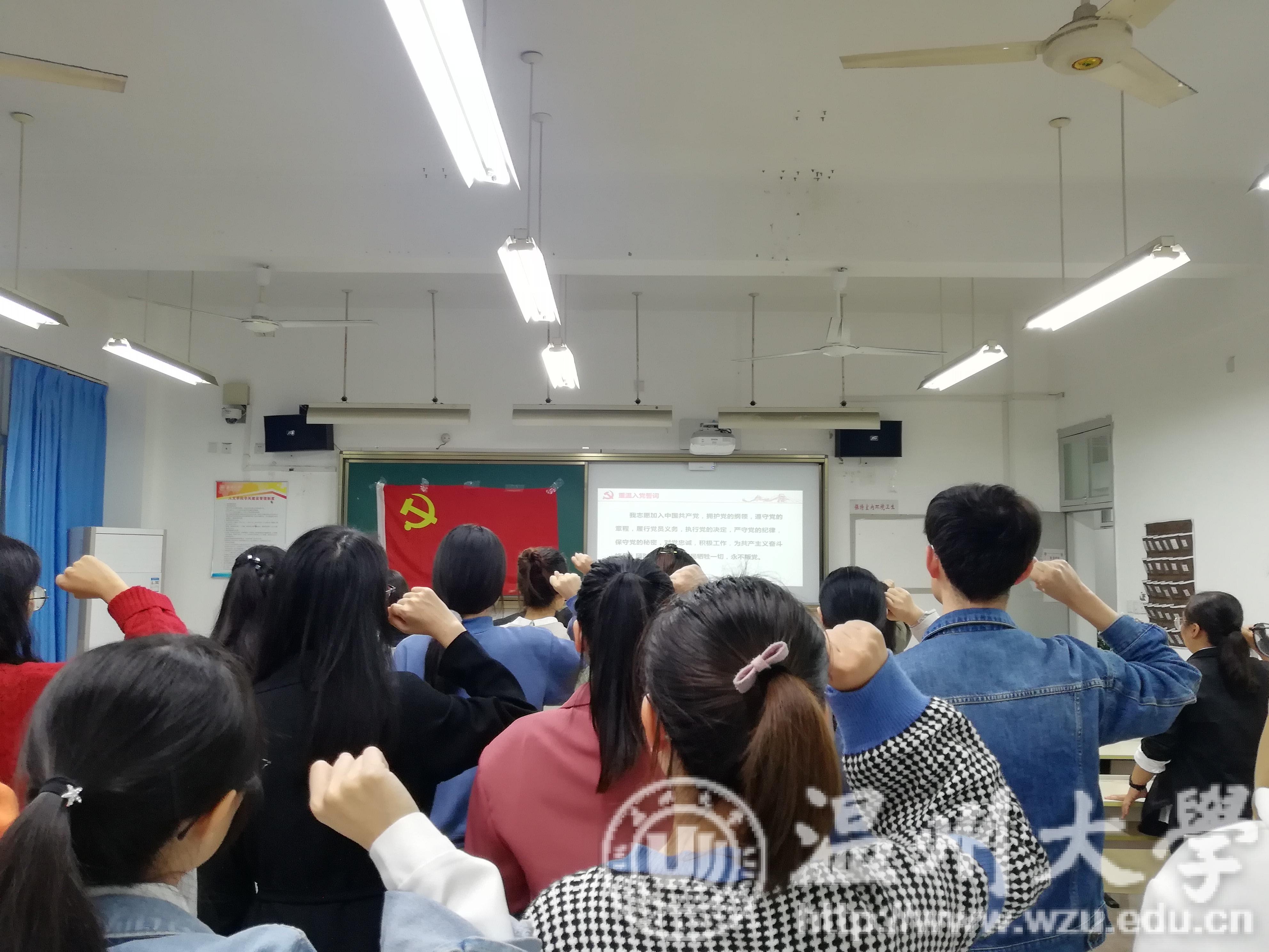 2019年11月7日,德赢官网学生第一党支部于人文楼303教室召开“四重四敢”主题党日活动,会议由支部书记李林军主持。