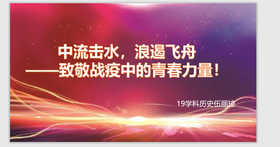 接着伍丽琼同学提到,在疫情期间,在支援湖北武汉的医务人员大军中,“90后”“00后”的年轻人有12000人之多,近乎整个队伍的三分之一。除了医护人员,公安民警、社区工作者、新闻工作者、志愿者等,抗疫一线奋斗者中同样活跃着青年人的身影。活跃在全国各个社区的防控一线,在不给国家添乱的同时,为疫情防控做出了自己力所能及的贡献。全国5.2万余支青年突击队,111.8万余名团员青年,冲向最前线。非典肆虐的时候,这群懵懵懂懂的孩子,被全社会小心翼翼地守护着;如今,“90后”“00后”活跃在疫情防控一线,反过来兢兢业业守护家人和国家。当年的被守护者成为今天的“逆行者”,这样一种身份的转变,这样一种爱与责任的传递,汇聚成今天我们民族生生不息的成长力、生命力。