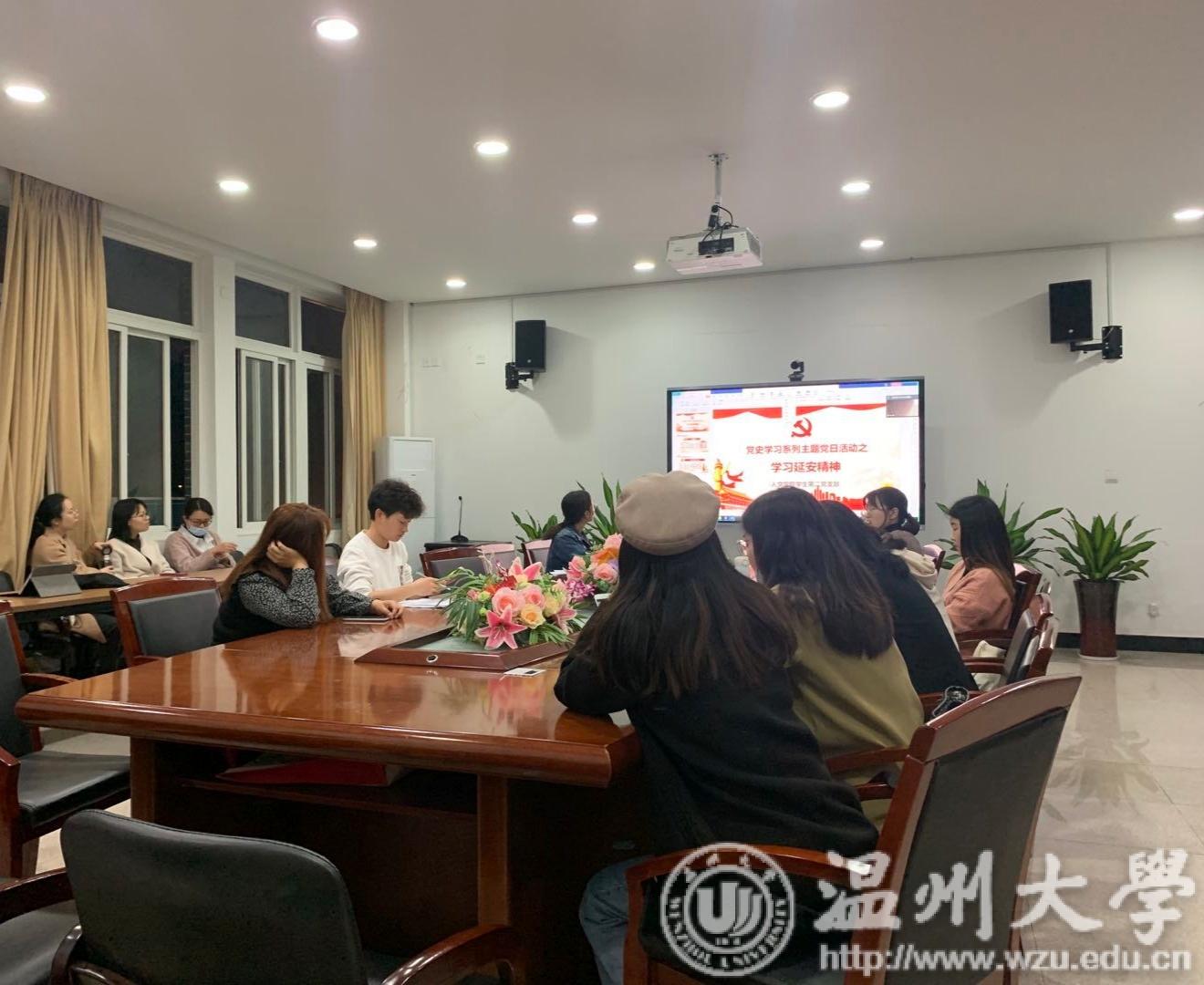 为贯彻落实习近平总书记在党史学习教育动员大会上的重要讲话精神,2021年3月16日晚,德赢官网学生第二党支部于人文楼213会议室举办了学习延安精神主题党日活动。本次活动由党支部书记陈赛君同志主持,全体党员通过线上或线下的方式共同参与会议。