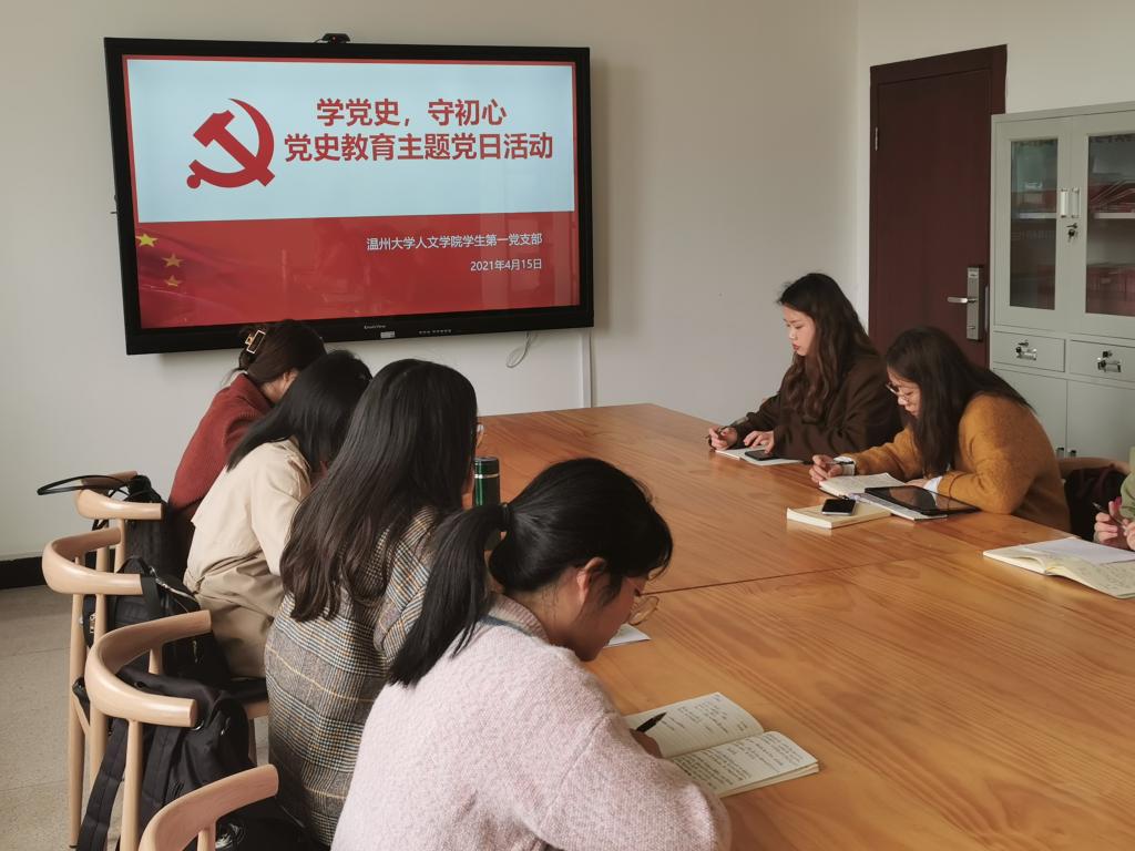 2021年4月15日,德赢ac米兰官方合作vwin学生第一党支部在人文楼党员之家活动室举办党史教育主题党日活动,由支部组织委员何锦顶主持。