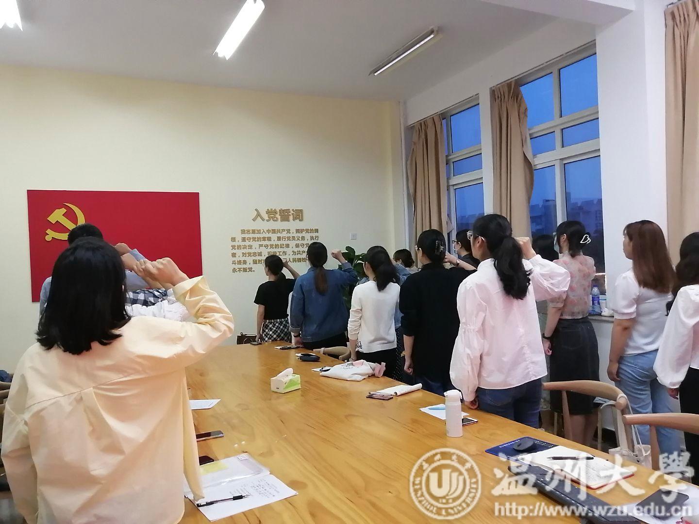 本次会议主要分为两大部分,首先是对毕业生党员开展理想信念教育和党性意识教育;其次是学习毕业生党员组织关系转接的相关知识。会议伊始,全体党员共同观看了革命先辈何功伟的相关视频资料。何功伟“苟瞻念光明前途,亦大可破涕而笑也”的伟大情怀把在场每一位党员的理想之心燃烧得炽热无比。随后,党员同志们一起观看了“习近平总书记对新时代青年的寄语”视频合集。习近平总书记对广大高校毕业生提出殷切期望,他希望广大青年“勇担时代使命,把个人理想追求融入党和国家事业之中。”之后,陈赛君同志带领大家重温入党誓词。在掷地有声的宣誓中,毕业生党员们重温了中国共产党的初心与使命,更加坚定为党、为祖国、为人民服务的决心。