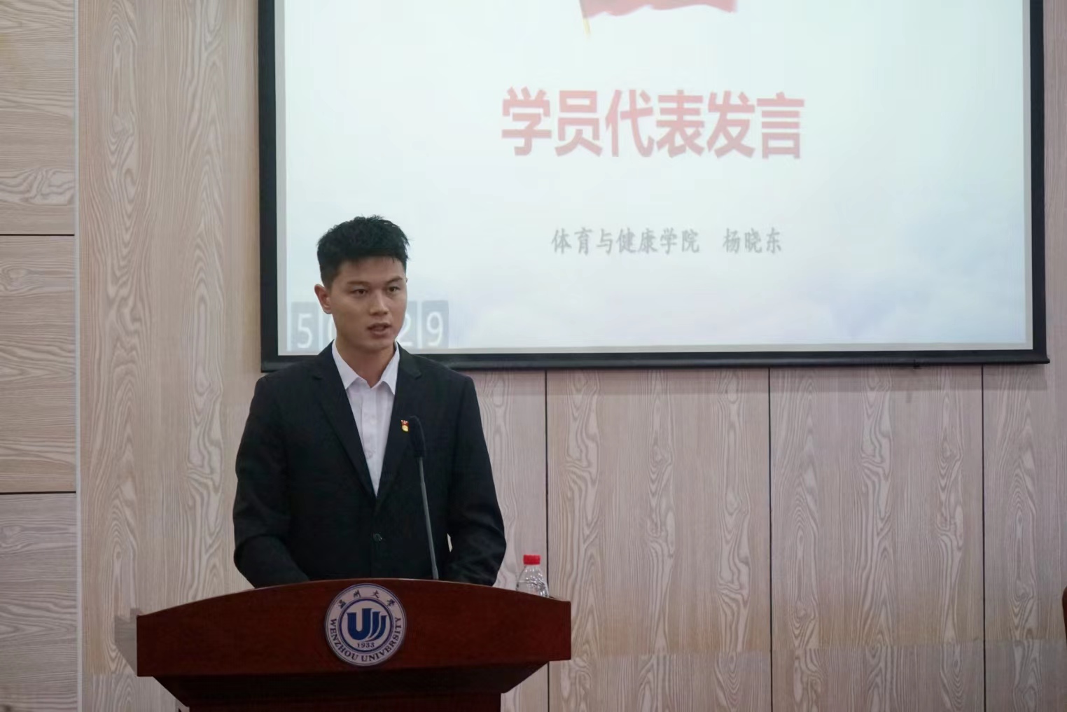 三、体育与健康学院杨晓东同学作为学员代表发言