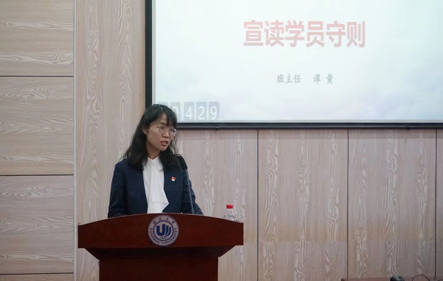 接着,班主任谭黄老师宣读党校培训《学员守则》,希望每个学员在接下来的学习培训中以《学员守则》为标准严格要求自己,服从各项安排管理,努力提高党性修养,努力建设一支党性坚强、作风正派、了解全局、业务精通、能力过硬、群众信任的高素质学生党员骨干队伍。