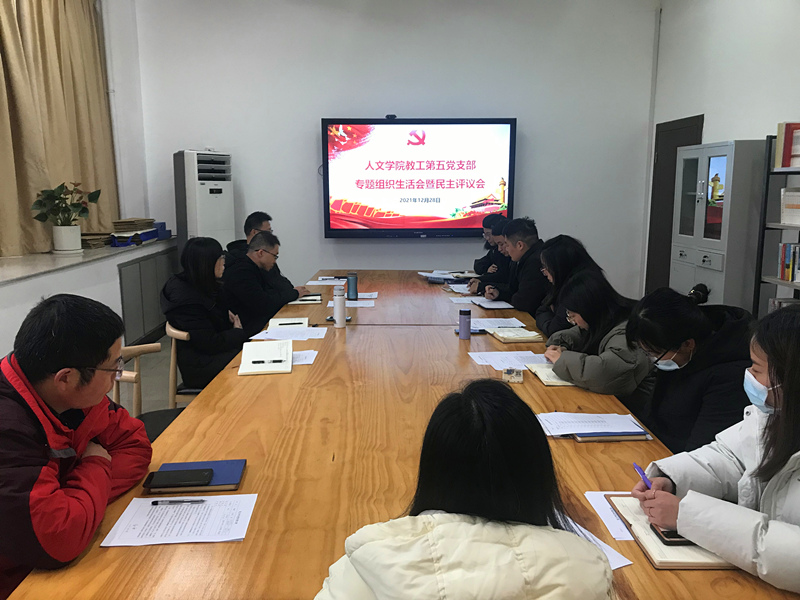 为进一步深化党史学习教育成果,发扬自我革命精神,根据学校通知要求,2021年12月28日下午,德赢官网教工第五党支部在人文楼党员之家召开了2021年度专题组织生活会暨民主评议会。