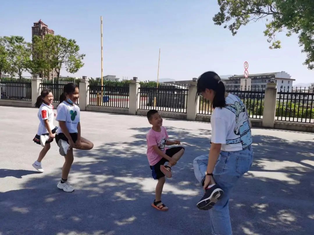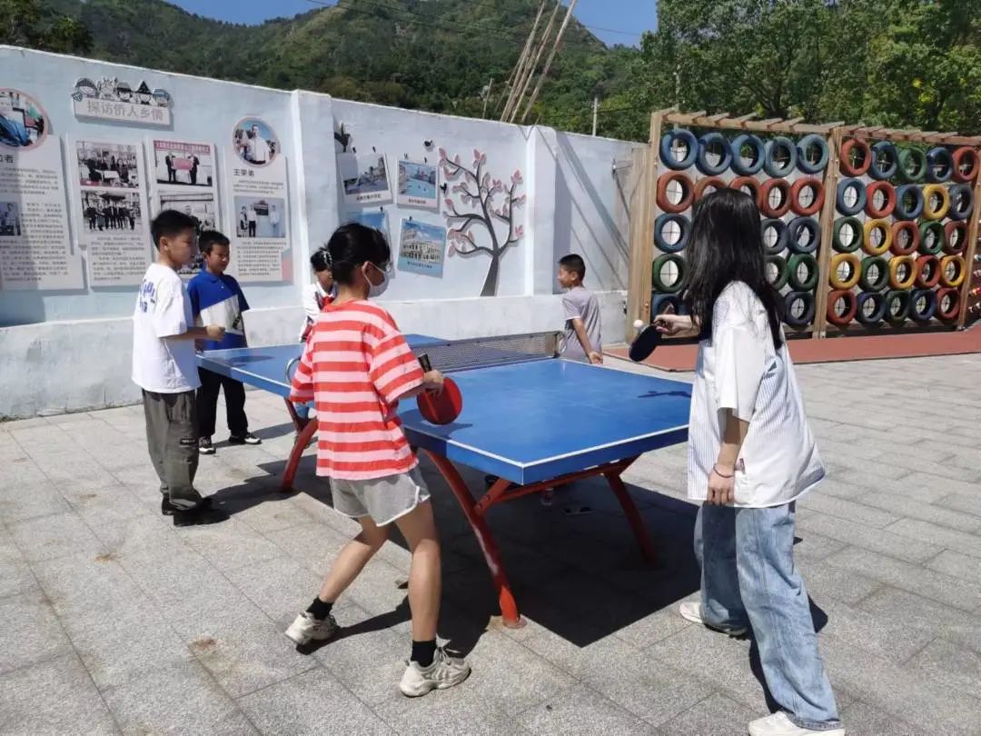 课堂学习环节结束,李婷同志紧接着主持游戏环节,带领孩子们走出教室,走向操场。活泼的孩子们情绪高涨,兴味浓厚,在志愿者的陪伴下,玩起乒乓球和“斗鸡”游戏,校园中顿时充满了孩子们的欢声笑语。