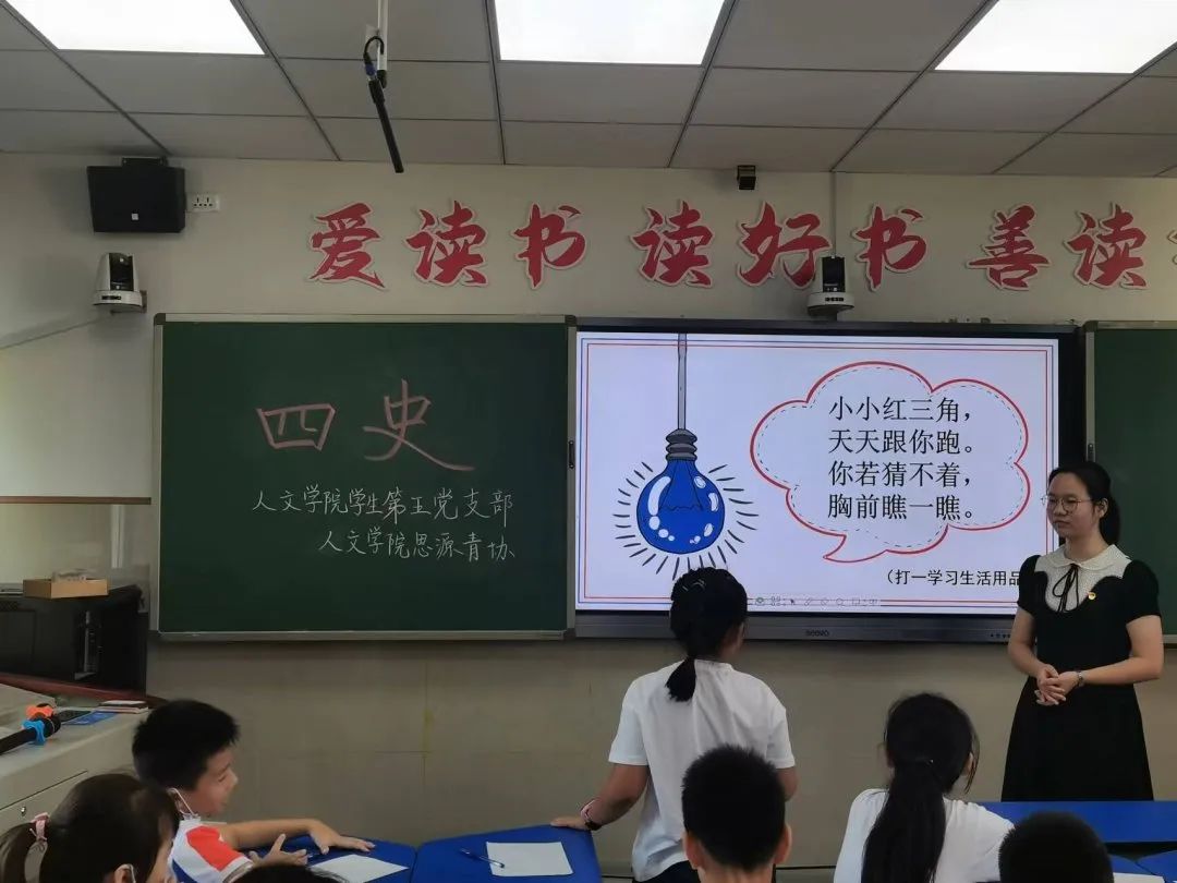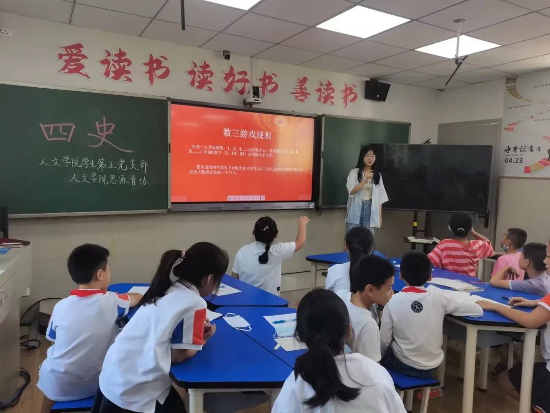 习近平总书记曾指出:“历史是最好的教科书。学习党史、国史,是我们坚持和发展中国特色社会主义、把党和国家各项事业继续推向前进的必修课。”在党的二十大即将召开之际,为全面贯彻落实党的教育方针,培育和践行社会主义核心价值观,德赢ac米兰官方合作vwin学生第五党支部携手温大人文思源青协,于9月24日早上前往温州市丽岙华侨小学进行党史知识宣讲活动。