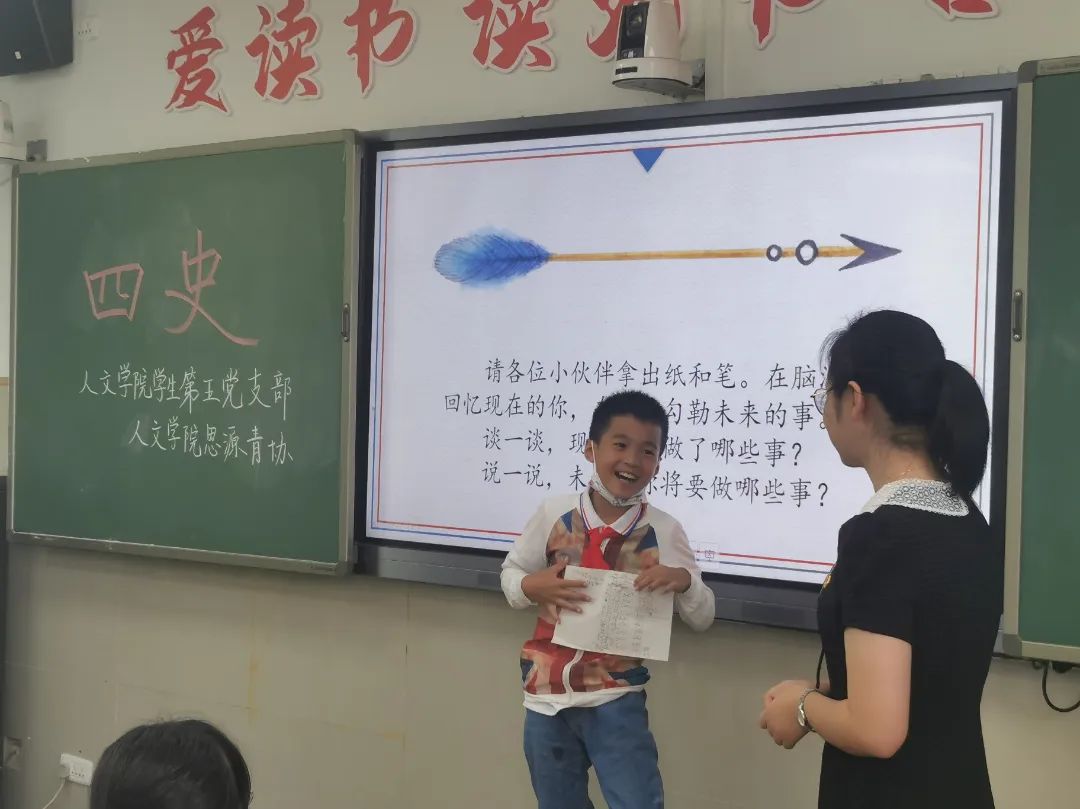 少年儿童朝气蓬勃,是党和国家的未来,是民族的希望。活动伊始,殷雯楠同志以猜谜语为切入口,为孩子们讲述了中国第一个少年儿童革命组织——安源童子团的诞生历程。通过与宣讲同志的精彩互动,孩子们了解了每天佩戴在胸前的红领巾的故事,并积极描述自己心目中时代好少年的形象,决心要热爱学习、热爱生活。课堂最后,在志愿者的帮助下,孩子们认真思索自己想为中国做出的贡献,并在纸上勾勒出未来蓝图。