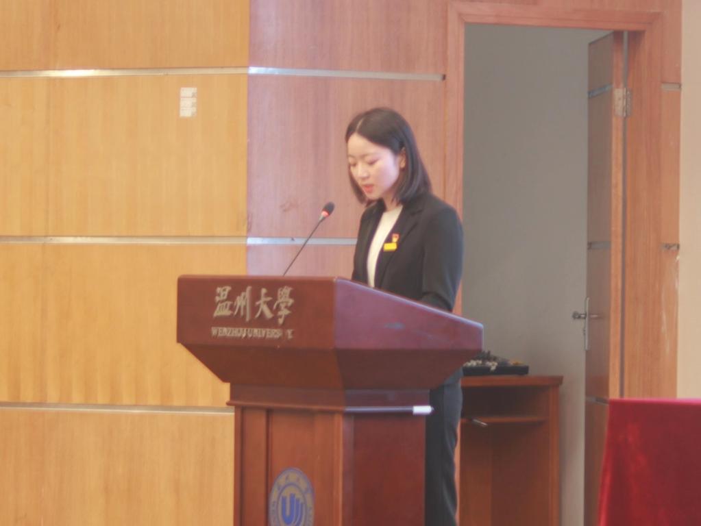 最后,20级新闻与传播研究生徐静同学代表全体学员对学校党委提供本次宝贵的学习培训机会表示感谢,她阐述了新时代青年身上所要肩负的责任与担当,并且代表全体学员作出郑重承诺:认真学习党的二十大相关理念,坚持理论联系实际原则,自觉遵守党校学习纪律,认真参加党课培训,积极参与党课发言讨论,完成规定的学习任务,怀揣梦想,勇于担当,以爱党爱国为指引,以报效祖国为己任,在实现中国梦的伟大实践中放飞青春梦想,擦亮青春底色,书写青春华章。
