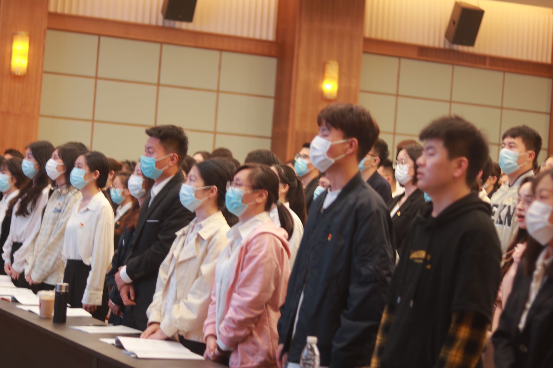 参加开班仪式全体人员庄严起立,奏唱国歌。
